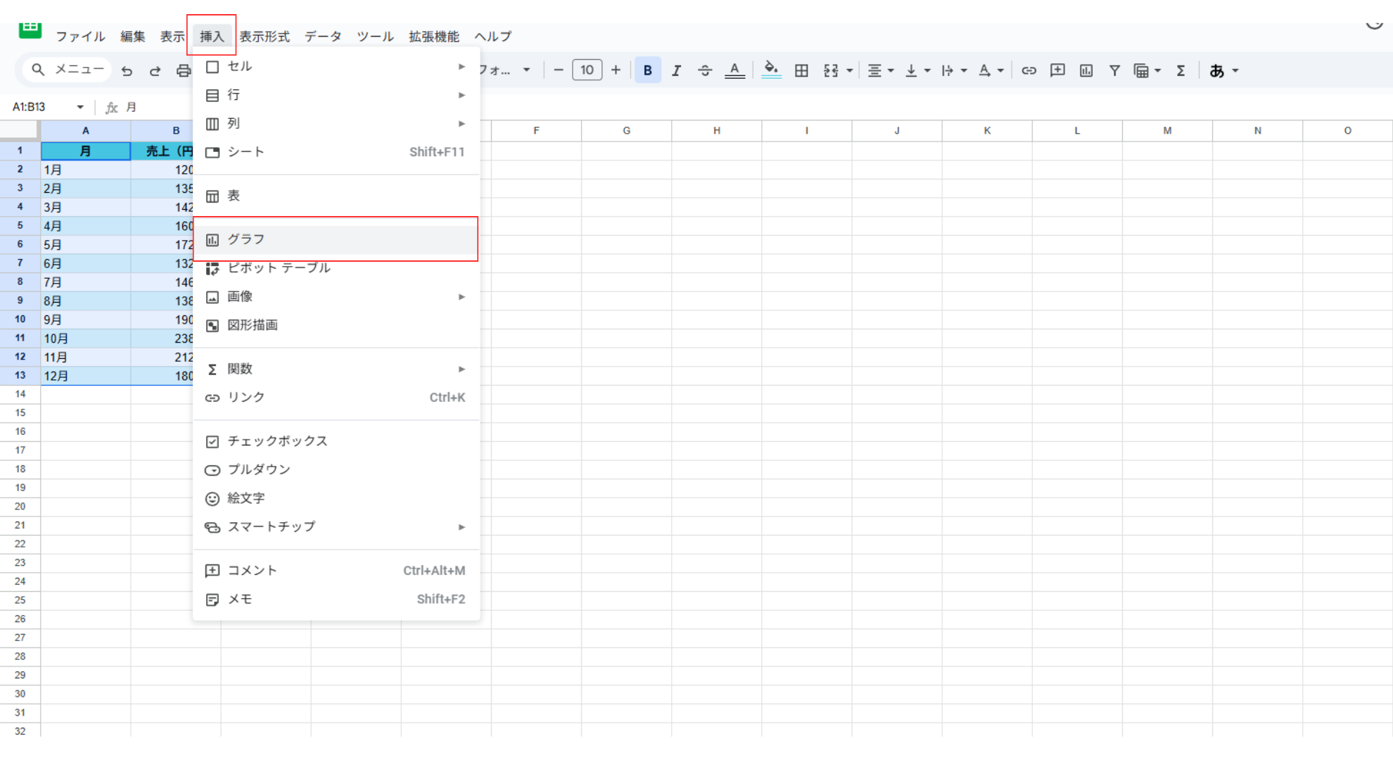 これだけでデータを判別して最適なグラフを自動で作成してくれます!